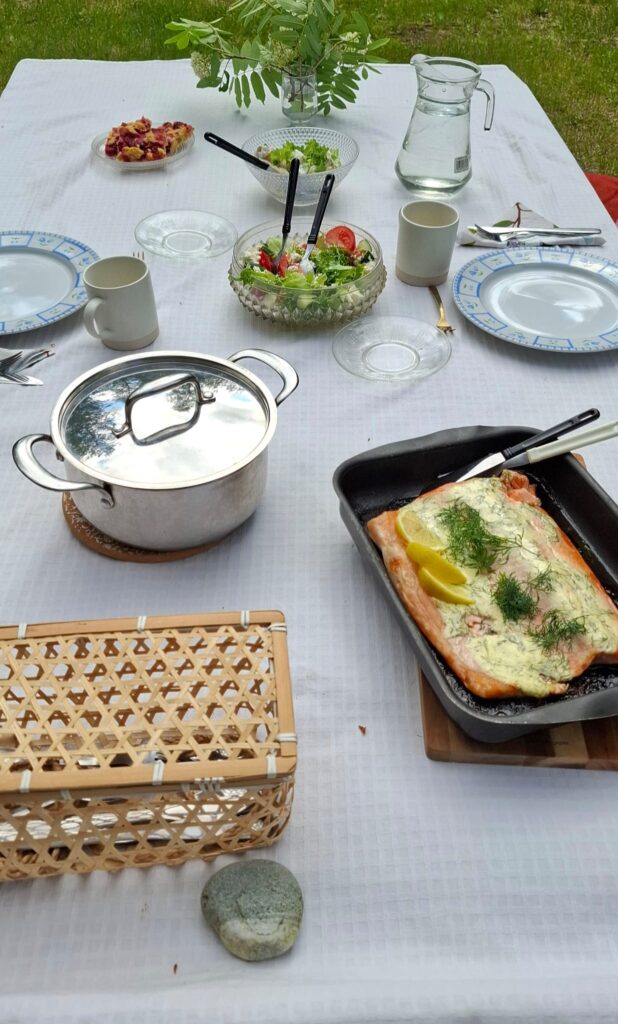 Meidän mökki on minulle niin rakas. Täällä on juhannuksena saunottu, uitu, grillattu ja vietetty aikaa. Tämän tunnelman ovat myös monet ystävät saaneet kokea. Isäni halusi, että valoisat kesäillat otetaan “talteen” eli nautitaan valosta ja ihmetellään luonnon kauneutta, koska talvella kesän hehkua ei voi kokea. Yhteiset hetket oli otettava talteen. Pohjoisen yötön yö saa hakea vertaistaan.