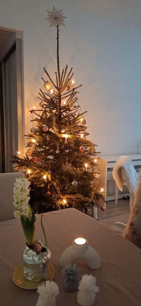 Meidän Joulun rakentaminen alkaa jo Itsenäisyyspäivän aikoihin. Minulle on ollut jo vuosia tärkeää, että saamme kotiimme joulukuusen ja että joulukuusi valaisee tämä joulukuun lapsen syntymäpäivää. Joulukuusi tuo ihmeen paljon valoa.
